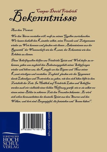 Wer den Strom verstehen will, muß zu seinen Quellen zurücksuchen. Wir lassen deshalb den Künstler selbst, seine Freunde und Zeitgenossen wieder zu Wort kommen und glauben mit diesen Bekenntnissen aus der Romantik der Wissenschaft wie der Kunst, der Erkenntnis wie dem Erlebnis zu dienen.