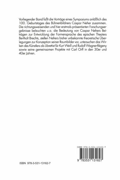 Einleitende Bemerkungen.- Caspar Neher - Der größte Bühnenbauer unserer Zeit. Einführung in das Werk und Wirken des Künstlers.- "Damit warten wir bis Cas kommt".- 'Geschärfter Blick' und 'Innere Schau'. Grundlagen und Entwicklung der Neherschen Bühne.- Die Realisierung des Entwurfs auf der Bühne.- The Three Elements of Mahagonny.- Caspar Neher und Kurt Weill. Ihre Zusammenarbeit und Freundschaft.- Der Bühnenbildner als Librettist. Caspar Neher und Rudolf Wagner-Régeny im nationalsozialistischen Opernbetrieb.- Caspar Neher und Carl Orff. Szenische Phantasie und Bühnenwirklichkeit im Widerstreit.- Verzeichnis der Autoren.