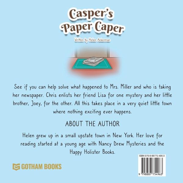 See if you can help solve what happened to Mrs. Miller and who is taking her newspaper. Chris enlists her friend Lisa for one mystery and her little brother, Joey, for the other. All this takes place in a very quiet little town where nothing exciting ever happens.