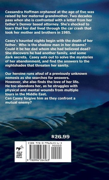 Casey's haunted nights begin with the death of her father. Who is the shadow man in her dreams? Could it be her dad whom she had believed dead? She discovers he had another family, and some dark secrets Casey sets out to solve the mysteries of her abandonment, and find the answers to the nightshades that threaten her sanity. Our heroine runs afoul of a previously unknown nemesis as she searches for answers, but she also finds the love of her life. He too abandons her, as he struggles with physical and mental wounds from multiple tours in the Middle East. Can Casey forgive him as they confront a mutual enemy? Readers will find the answers in this fast moving murder mystery that includes a bit of romance. Adult entertainment: recommended for readers 18 and up.
