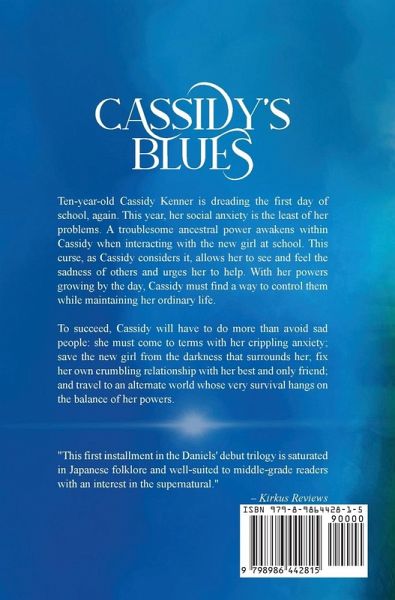 Cassidy's Blues is a middle-grade contemporary fantasy novel. Cassidy's Blues covers many issues and life events middle-schoolers face: friendship, bullying, social awkwardness and anxiety, and loss. It also stresses the importance of empathy and being a good friend. Ten-year-old Cassidy Kenner is dreading the first day of school, again. This year, her social anxiety is the least of her problems. A troublesome ancestral power awakens within Cassidy when interacting with the new girl at school. This curse, as Cassidy considers it, allows her to see and feel the sadness of others and urges her to help. With her powers growing by the day, Cassidy must find a way to control them while maintaining her ordinary life. To succeed, Cassidy will have to do more than avoid sad people: she must come to terms with her crippling anxiety; save the new girl from the darkness that surrounds her; fix her own crumbling relationship with her best and only friend; and travel to an alternate world whose very survival hangs on the balance of her powers. Readers who like a story offering a wide array of emotions will love Cassidy's Blues.