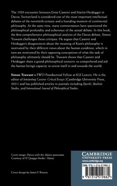 The 1929 encounter between Ernst Cassirer and Martin Heidegger in Davos, Switzerland is considered one of the most important intellectual debates of the twentieth century and a founding moment of continental philosophy. At the same time, many commentators have questioned the philosophical profundity and coherence of the actual debate. In this book, the first comprehensive philosophical analysis of the Davos debate, Simon Truwant challenges these critiques. He argues that Cassirer and Heidegger's disagreement about the meaning of Kant's philosophy is motivated by their different views about the human condition, which in turn are motivated by their opposing conceptions of what the task of philosophy ultimately should be. Truwant shows that Cassirer and Heidegger share a grand philosophical concern: to comprehend and aid the human being's capacity to orient itself in and towards the world.