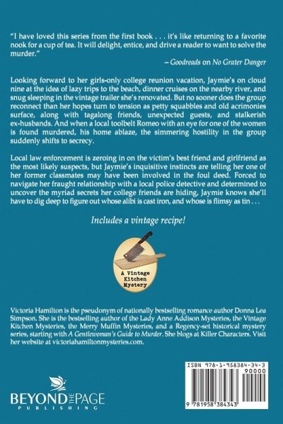 In the new Vintage Kitchen Mystery from the author of Breaking the Mould, when an over-amorous handyman is found murdered, Jaymie will have to use every tool at her disposal to nab the culprit . . . "I have loved this series from the first book . . . it's like returning to a favorite nook for a cup of tea. It will delight, entice, and drive a reader to want to solve the murder." -Goodreads on No Grater Danger Looking forward to her girls-only college reunion vacation, Jaymie's on cloud nine at the idea of lazy trips to the beach, dinner cruises on the nearby river, and snug sleeping in the vintage trailer she's renovated. But no sooner does the group reconnect than her hopes turn to tension as petty squabbles and old acrimonies surface, along with tagalong friends, unexpected guests, and stalkerish ex-husbands. And when a local toolbelt Romeo with an eye for one of the women is found murdered, his home ablaze, the simmering hostility in the group suddenly shifts to secrecy. Local law enforcement is zeroing in on the victim's best friend and girlfriend as the most likely suspects, but Jaymie's inquisitive instincts are telling her one of her former classmates may have been involved in the foul deed. Forced to navigate her fraught relationship with a local police detective and determined to uncover the myriad secrets her college friends are hiding, Jaymie knows she'll have to dig deep to figure out whose alibi is cast iron, and whose is flimsy as tin . . . Includes a vintage recipe! Praise for the Vintage Kitchen Mysteries: "All the right ingredients . . . Small-town setting, kitchen antiques . . . and a bowlful of mystery. A perfect recipe." -New York Times bestselling author Susan Wittig Albert "[A] charming new series." -New York Times bestselling author Sheila Connolly "A chilling whodunit." -Richmond Times-Dispatch "Well-plotted with several unexpected twists and more developed characters." -The Mystery Reader "Jaymie is a great character . . . She is inquisitive and full of surprises!" -Debbie's Book Bag