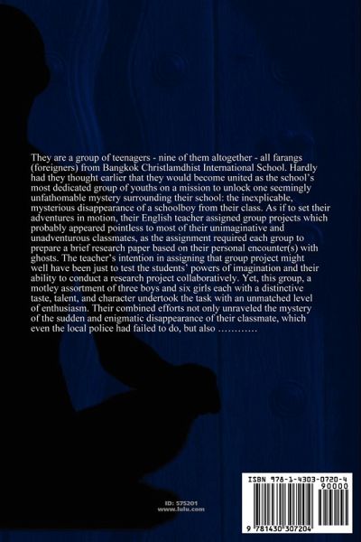 The story begins at an International School in Bangkok, where a boy goes missing without leaving a trace. A group of teenage students accidentally discover the cause of his disappearance while doing a special project assigned by their English teacher, and realize that it is incumbent on all of them to do something collaboratively to protect their fellow students from similar tragedies. Simply put, CAST NINE SHADOWS tells a suspenseful story and emphasizes the importance of creative independence and freedom of exploration in the lives of teenagers. A story for teenagers by two teenage sisters from Burma.