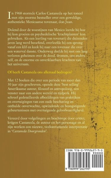 In 1968 stormde Carlos Castaneda op het toneel met zijn enorme bestseller over een geweldige, authentieke Mexicaanse tovenaar, don Juan. Dolend door de woestijnen van Mexico leerde hij hoe hij kon groeien en psychedelische 'kracht planten’ kon gebruiken. Als een leerling van tovenarij die duizenden jaren lang werd beoefend, overleefde hij een sprong vanaf een klif en keek hij naar een tovenaar die over een waterval danste. Onderweg deelde hij met ons lang verloren geheimen over de dood, dromen, ons andere zelf, en de enorme en onverklaarbare krachten van het universum. Of heeft Castaneda ons allemaal bedrogen? Met 12 boeken die over een periode van meer dan 30 jaar zijn geschreven, opende deze ‘best selling’ Amerikaanse auteur, filosoof en antropoloog, een venster naar een andere wereld en tijdperk. Hij schreef gedetailleerde afbeeldingen van praktijken en overtuigingen van een oude beschaving en onthulde onverwachte, opwindende en beangstigende gebeurtenissen met overtuigende geloofwaardigheid. Vereerd door volgelingen en beschimpt door critici, krijgen Castaneda, de auteur en het personage en al zijn werken een nieuwe, veelomvattende interpretatie in ‘Castaneda Doorgronden’.