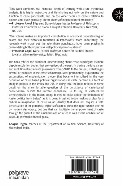 The book refutes the dominant understanding about caste panchayats as mere dispute resolution bodies that are vestiges of the past. In tracing the long career and evolution of intra-caste governance from 300 BC to the present, it challenges several orthodoxies in the caste scholarship.