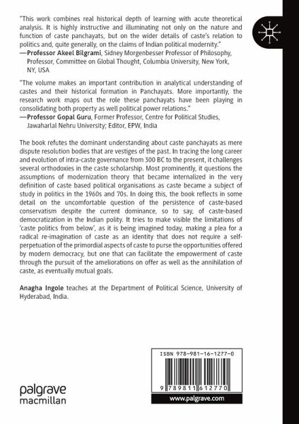 Most prominently, it questions the assumptions of modernization theory that became internalized in the very definition of caste-based political organisations as caste became a subject of study in politics in the 1960s and 70s. In doing this, the book reflects in some detail on the uncomfortable question of the persistence of caste-based conservatism despite the current dominance, so to say, of caste-based democratization in the Indian polity. It tries to make visible the limitations of 'caste politics from below', as it is being imagined today, making a plea for a radical re-imagination of caste as an identity that does not require a self-perpetuation of the primordial aspects of caste to pursethe opportunities offered by modern democracy, but one that can facilitate the empowerment of caste through the pursuit of the ameliorations on offer as well as the annihilation of caste, as eventually mutual goals.