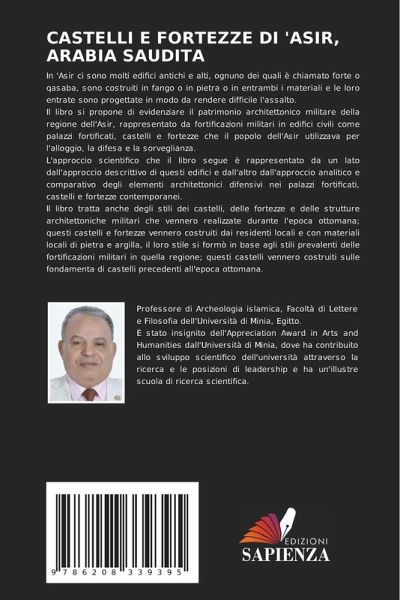 In 'Asir ci sono molti edifici antichi e alti, ognuno dei quali è chiamato forte o qasaba, sono costruiti in fango o in pietra o in entrambi i materiali e le loro entrate sono progettate in modo da rendere difficile l'assalto. Il libro si propone di evidenziare il patrimonio architettonico militare della regione dell'Asir, rappresentato da fortificazioni militari in edifici civili come palazzi fortificati, castelli e fortezze che il popolo dell'Asir utilizzava per l'alloggio, la difesa e la sorveglianza. L'approccio scientifico che il libro segue è rappresentato da un lato dall'approccio descrittivo di questi edifici e dall'altro dall'approccio analitico e comparativo degli elementi architettonici difensivi nei palazzi fortificati, castelli e fortezze contemporanei.Il libro tratta anche degli stili dei castelli, delle fortezze e delle strutture architettoniche militari che vennero realizzate durante l'epoca ottomana; questi castelli e fortezze vennero costruiti dai residenti locali e con materiali locali di pietra e argilla, il loro stile si formò in base agli stili prevalenti delle fortificazioni militari in quella regione; questi castelli vennero costruiti sulle fondamenta di castelli precedenti all'epoca ottomana.