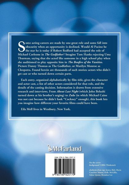 Some acting careers are made by one great role and some fall into obscurity when one is declined. Would Al Pacino be the star he is today if Robert Redford had accepted the role of Michael Corleone in The Godfather? Imagine Tom Hanks rejecting Uma Thurman, saying that she acted like someone in a high school play when she auditioned to play opposite him in The Bonfire of the Vanities. Picture Danny Thomas as The Godfather, or Marilyn Monroe as Cleopatra. This reference work lists hundreds of such stories: actors who didn't get cast or who turned down certain parts. Each entry, organized alphabetically by film title, gives the character and actor cast, a list of other actors considered for that role, and the details of the casting decision. Information is drawn from extensive research and interviews. From About Last Night (which John Belushi turned down at his brother's urging) to Zulu (in which Michael Caine was not cast because he didn't look "Cockney" enough), this book lets you imagine how different your favorite films could have been.