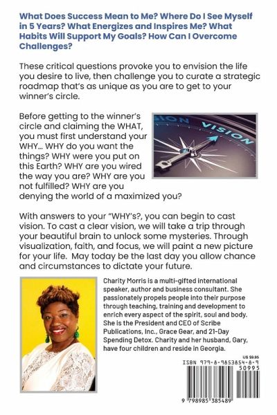 What Does Success Mean to Me? Where Do I See Myself in 5 Years? What Energizes and Inspires Me? What Habits Will Support My Goals? How Can I Overcome Challenges? These critical questions provoke you to envision the life you desire to live, then challenge you to curate a strategic roadmap that's as unique as you are to get to your winner's circle. Before getting to the winner's circle and claiming the WHAT, you must first understand your WHY... WHY do you want the things? WHY were you put on this Earth? Why are you wired the way you are? WHY are you not fulfilled? Why are you denying the world of a maximized you? To cast a clear vision, we will take a trip through your beautiful brain to unlock some mysteries. Through visualization, faith, and focus, we will paint a new picture for your life. May today be the last day you allow chance and circumstances dictate your future.