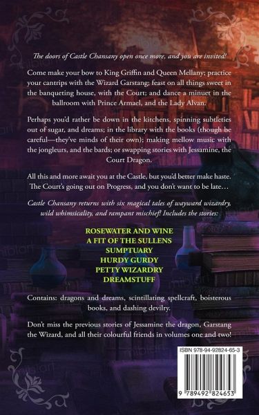 The doors of Castle Chansany open once more, and you are invited! Come make your bow to King Griffin and Queen Mellany; practice your cantrips with the Wizard Garstang; feast on all things sweet in the banqueting house, with the Court; and dance a minuet in the ballroom with Prince Armael, and the Lady Alvan. Perhaps you'd rather be down in the kitchens, spinning subtleties out of sugar, and dreams; in the library with the books (though be careful-they've minds of their own); making mellow music with the jongleurs, and the bards; or swapping stories with Jessamine, the Court Dragon. All this and more await you at the Castle, but you'd better make haste. The Court's going out on Progress, and you don't want to be late... Castle Chansany returns with six magical tales of wayward wizardry, wild whimsicality, and rampant mischief! Includes the stories: Rosewater and Wine A Fit of the Sullens Sumptuary Hurdy Gurdy Petty Wizardry Dreamstuff Contains: dragons and dreams, scintillating spellcraft, boisterous books, and dashing devilry. Don't miss the previous stories of Jessamine the dragon, Garstang the Wizard, and all their colourful friends in volumes one and two!