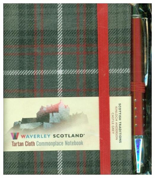 This Castle Grey Tartan mini real cloth tartan notebook is part of the Scottish Traditions series. Inspired by Edinburgh Castle, the tartan has four shades of grey with a red and white over check. This is one of Kinloch Anderson's house tartans range. This mini notebook has an expandable inner note holder, and a pen.
