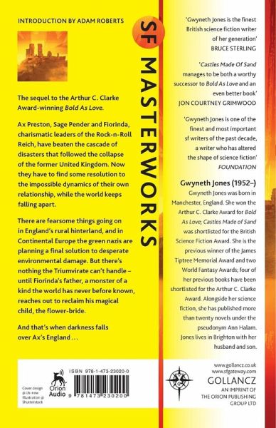 Gwyneth Jones lives in Brighton with her husband and son. She won the Arthur C. Clarke Award for BOLD AS LOVE, the first book in this sequence; CASTLES MADE OF SAND was shortlisted for the British Science Fiction Award. She is the previous winner of the James Tiptree Memorial Award and two World Fantasy Awards; four of her previous books have been shortlisted for the Arthur C. Clarke Award.