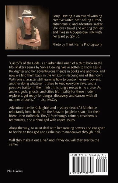Award-winning Novel! 2nd place in NM Press Women Communications Contest, finalist for the Silver Falchion! "Castoffs of the Gods is an adrenaline rush in the Idol Makers series by Sonja Dewing...As ancient gods, ghosts, and cities blur reality for these modern explorers, get ready for danger, discovery, and dances with all manner of devils." - Lisa McCoy Adventurer Leslie Kicklighter and Mystery Sleuth AJ Bluehorse reluctantly head back into the Amazon jungle in search for their friend John Holbrook. They'll face hungry caiman, treacherous teammates, and a demi-god with anger issues. Along the way AJ must deal with her growing powers and ego given to her by an Inca god and Leslie has to maneuver through it all. Will they make it out alive? And if they do, will they ever be the same? Follow the adventures of Leslie Kicklighter and AJ Bluehorse in this thrilling sequel to Gamble of the Gods. Book 1: Toy of the Gods Book 2: Gamble of the Gods Book 3: Castoffs of the Gods Book 4: Relics of the Gods - the final thrilling book in the series!