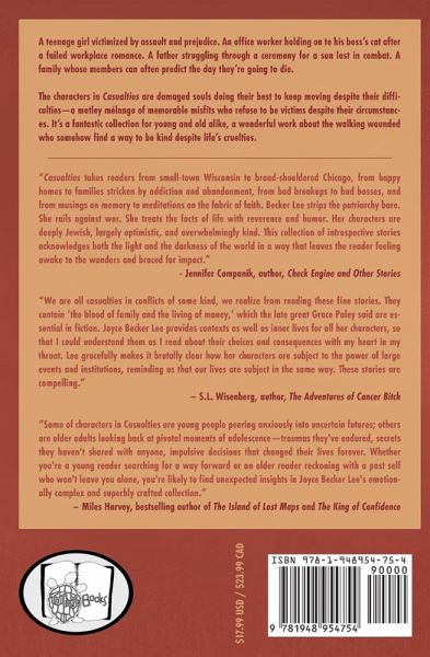 A teenage girl victimized by assault and prejudice. An office worker holding on to his boss’s cat after a failed workplace romance. A father struggling through a ceremony for a son lost in combat. A family whose members can often predict the day they’re going to die. The characters in Casualties are damaged souls doing their best to keep moving despite their difficulties—a motley mélange of memorable misfits who refuse to be victims despite their circumstances. It’s a fantastic collection for young and old alike, a wonderful work about the walking wounded who somehow find a way to be kind despite life’s cruelties.…mehr