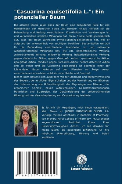 Die aktuelle Studie zeigt, dass der Baum eine bedeutende Rolle für das Wohlbefinden der Menschen spielt und darüber hinaus hilfreich für die Behandlung und Heilung verschiedener Krankheiten und Verwirrungen ist und verschiedene nützliche Wirkungen hat. Diese Studie deckt grundsätzlich auf, dass der Baum zahlreiche Phyto-Substanz-Bestandteile hat, weil er aufgrund der Anwesenheit von wichtigen bioaktiven Bestandteilen wertvoll für die Behandlung verschiedener Krankheiten ist und zahlreiche wiederherstellende Wirkungen hat, wie z.B. bänderfeindliche Wirkung, zellverstärkende Wirkung, mildernde Wirkung, bakterienfeindliche Wirkung, gegen diabetische Aktion, gegen Geschwür Aktion, spasmolytische Aktion, zyto-giftige Aktion, feindlich gegen Parasiten-Aktion, nephro-defensive Aktion und so weiter und die Casuarina equisetifolia ist ebenfalls einer der lohnendsten Baum Kulturen auf dem Planeten als Folge seiner verschiedenen erwarteten nutzt als eine übliche und Geschäft.Dieses Buch befasst sich außerdem mit der Erhaltung und Wiederherstellung des Bodens, den erblichen Eigenschaften und der Vermehrung von Bäumen, der Untersuchung von Unbeständigkeit, der Physiologie von Bäumen, der organischen Chemie, neuen Aufzeichnungen, Geschäftsanwendungen, Materialien und Strategien, der Gewährleistung der zellverstärkenden Wirkung und der Versuchsplanung von Casuarina equisetifolia.