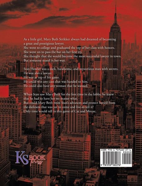 As a little girl, Mary Beth Strikker always had dreamed of becoming a great and prestigious lawyer. She went to college and graduated the top of her class with honors. She went on to pass the bar on her first try. She thought that she would become the most successful lawyer in town. But someone stood in her way. Stan Howler was a dark, handsome, and mysterious man with secrets. He was also a lawyer. He was at top of his game. He could win any case that was handed to him. He could also have any woman that he wanted. When Stan saw Mary Beth for the first time in the lobby, he knew that he had to have her no matter what. But could Mary Beth resist Stan's advances and protect herself from the darkness that was yet to come and live to tell it? Only time would tell in this game of Cat and Mouse.