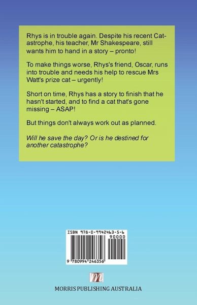 ABOUT THE BOOK: CAT-apult is a fun and entertaining read that I'm sure would be enjoyed by young boys. This story is along the same lines as the Just books and Captain Underpants series: crazy, funny and really silly - everything a nine-year-old boy loves in a book. SYNOPSIS Rhys is in trouble again. Despite his recent Cat-astrophe, his teacher, Mr Shakespeare, still wants him to hand in a story - pronto! To make things worse, Rhys's friend, Oscar, runs into trouble and needs his help to rescue Mrs Watt's prize cat - urgently! Short on time, Rhys has a story to finish that he hasn't started, and to find a cat that's gone missing - ASAP! But things don't always work out as planned. Will he save the day? Or is he destined for another catastrophe?