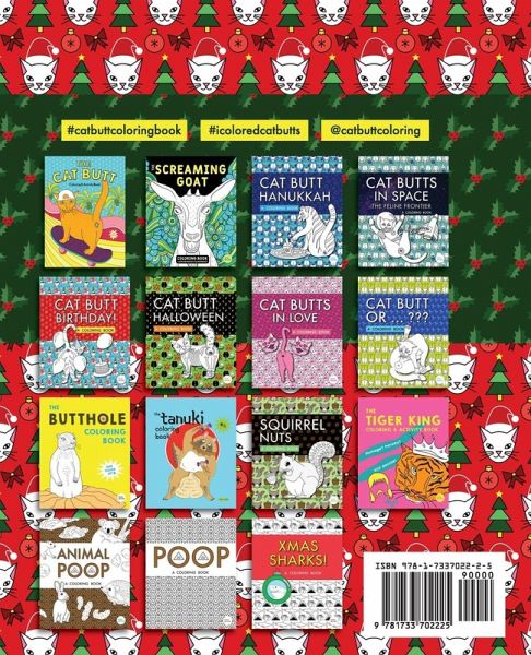 Fresh for the Holidays from the author of Cat Butts, A Coloring Book: Do you need to knock it out of the park for that special cat-lover this Christmas? Want to upstage all your coworkers at the annual White Elephant / Secret Santa party? Cat Butts Christmas has you covered with pages and pages of Cat Butts getting into the joys of the season. #CatButtChristmas #CatButtXmas Cat Butt Christmas: A Xmas Coloring Book is the #purrfect companion to the cat butt magnet set we all know you and your friends already have. You can color your favorite pages, tear them out and display them proudly on your fridge for all to see.