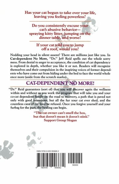 Cat Dependency. What is it? Who suffers from it? And how can those afflicted free themselves from the tyranny of their tabbies? At last, there's a book that offers new hope to the millions who for years have been trampled underpaw. Without pussyfooting around, this recovery guide teaches how to live care-free and cat-free again.