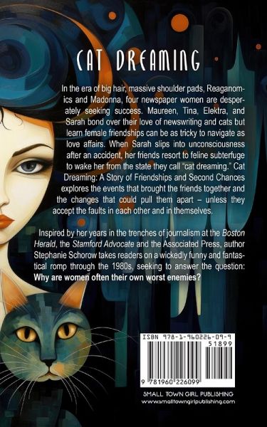 In the era of big hair, massive shoulder pads, Reaganomics and Madonna, four newspaper women are desperately seeking success. Maureen, Tina, Elektra, and Sarah bond over their love of newswriting and cats but learn female friendships can be as tricky to navigate as love affairs. When Sarah slips into unconsciousness after an accident, her friends resort to feline subterfuge to wake her from the state they call "cat dreaming." Cat Dreaming: A Story of Friendships and Second Chances explores the events that brought the friends together and the changes that could pull them apart - unless they accept the faults in each other and in themselves. Inspired by her years in the trenches of journalism at the Boston Herald, the Stamford Advocate and the Associated Press, author Stephanie Schorow takes readers on a wickedly funny and fantastical romp through the 1980s, seeking to answer the question: Why are women often their own worst enemies?