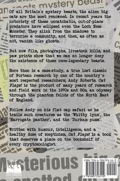 Of all Britain`s mystery beasts, the alien big cats are the most renowned. In recent years the notoriety of these uncatchable, out-of-place predators have eclipsed even the Loch Ness Monster. They slink from the shadows to terrorise a community, and then, as often as not, vanish like ghosts. But now film, photographs, livestock kills, and paw prints show that we can no longer deny the existence of these once-legendary beasts. Here then is a case-study, a true lost classic of Fortean research by one of the country's most respected researchers; Andy Roberts. Cat Flaps! is the product of many years of research and field work in the 1970s and 80s, an odyssey through the phantom felids of the North East of England. Follow Andy on his flat cap safari as he trails such creatures as the 'Whitby lynx', the 'Harrogate panther', and the 'Durham puma'. Written with humour, intelligence, and a healthy dose of scepticism, Cat Flaps! is a book that deserves a place on the bookshelf of every cryptozoologist.