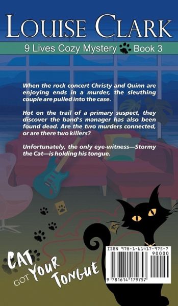 ". . . a murder mystery that is well written, well paved, and has characters just quirky enough to be believable. ~J. Lee, eBook Discovery When the rock concert Christy and Quinn are enjoying ends in a murder, the sleuthing couple are pulled into the case. Hot on the trail of a primary suspect, they discover the band's manager has also been found dead. Are the two murders connected, or are there two killers? Unfortunately, the only eye-witness--Stormy the Cat--is holding his tongue. Publisher Note: The 9 Lives Cozy Mysteries, while containing some mild profanity, will be enjoyed by mature…mehr