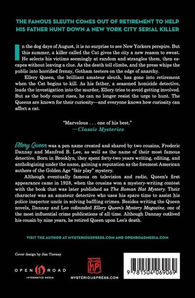 The famous sleuth comes out of retirement to help his father hunt down a New York City serial killer: "Marvelous . . . one of his best" (Classic Mysteries). In the dog days of August, it is no surprise to see New Yorkers perspire. But this summer, a killer called the Cat gives the city a new reason to sweat. He selects his victims seemingly at random and strangles them, then escapes without leaving a clue. As the death toll climbs, and the press whips the public into horrified frenzy, Gotham teeters on the edge of anarchy. Ellery Queen, the brilliant amateur sleuth, has gone into retirement when the Cat begins to kill. As his father, a seasoned homicide detective, leads the investigation into the murder, Ellery tries to avoid getting involved. But as the body count rises, he can no longer resist the urge to hunt. The Queens are known for their curiosity--and everyone knows how curiosity can affect a cat.