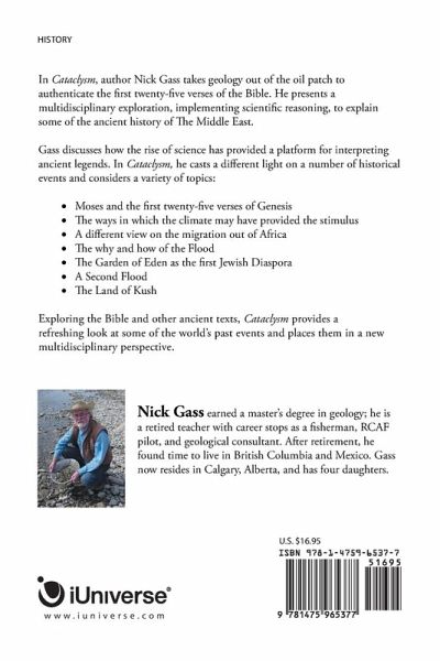 In Cataclysm, author Nick Gass takes geology out of the oil patch to authenticate the first twenty-five verses of the Bible. He presents a multidisciplinary exploration, implementing scientific reasoning, to explain some of the ancient history of The Middle East. Gass discusses how the rise of science has provided a platform for interpreting ancient legends. In Cataclysm, he casts a different light on a number of historical events and considers a variety of topics: Moses and the first twenty-five verses of Genesis The ways in which the climate may have provided the stimulus A different view on the migration out of Africa The why and how of the Flood The Garden of Eden as the first Jewish Diaspora A Second Flood The Land of Kush Exploring the Bible and other ancient texts, Cataclysm provides a refreshing look at some of the world's past events and places them in a new multidisciplinary perspective.