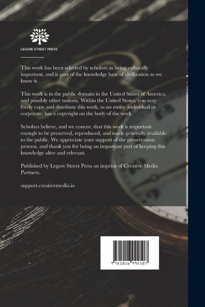 This work has been selected by scholars as being culturally important, and is part of the knowledge base of civilization as we know it. This work is in the "public domain in the United States of America, and possibly other nations. Within the United States, you may freely copy and distribute this work, as no entity (individual or corporate) has a copyright on the body of the work. Scholars believe, and we concur, that this work is important enough to be preserved, reproduced, and made generally available to the public. We appreciate your support of the preservation process, and thank you for…mehr