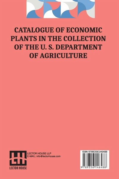 NEW PRINT WITH PROFESSIONAL TYPE-SET IN CONTRAST TO SCANNED PRINTS OFFERED BY OTHERS Catalogue Of Economic Plants In The Collection Of The U. S. Department Of Agriculture This book is a result of an effort made by us towards making a contribution to the preservation and repair of original classic literature. In an attempt to preserve, improve and recreate the original content, we have worked towards: 1. Type-setting & Reformatting: The complete work has been re-designed via professional layout, formatting and type-setting tools to re-create the same edition with rich typography, graphics, high quality images, and table elements, giving our readers the feel of holding a fresh and newly reprinted and/or revised edition, as opposed to other scanned & printed (Optical Character Recognition - OCR) reproductions. 2. Correction of imperfections: As the work was re-created from the scratch, therefore, it was vetted to rectify certain conventional norms with regard to typographical mistakes, hyphenations, punctuations, blurred images, missing content/pages, and/or other related subject matters, upon our consideration. Every attempt was made to rectify the imperfections related to omitted constructs in the original edition via other references. However, a few of such imperfections which could not be rectified due to intentional\unintentional omission of content in the original edition, were inherited and preserved from the original work to maintain the authenticity and construct, relevant to the work.