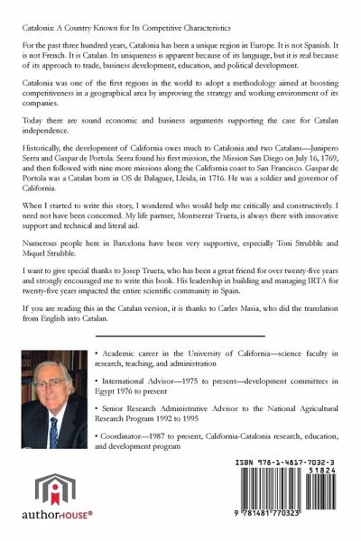 Catalonia: A Country Known for Its Competitive Characteristics For the past three hundred years, Catalonia has been a unique region in Europe. It is not Spanish. It is not French. It is Catalan. Its uniqueness is apparent because of its language, but it is real because of its approach to trade, business development, education, and political development. Catalonia was one of the first regions in the world to adopt a methodology aimed at boosting competitiveness in a geographical area by improving the strategy and working environment of its companies. Today there are sound economic and business arguments supporting the case for Catalan independence. Historically, the development of California owes much to Catalonia and two Catalans-Junipero Serra and Gaspar de Portola. Serra found his first mission, the Mission San Diego on July 16, 1769, and then followed with nine more missions along the California coast to San Francisco. Gaspar de Portola was a Catalan born in OS de Balaguer, Lleida, in 1716. He was a soldier and governor of California. When I started to write this story, I wondered who would help me critically and constructively. I need not have been concerned. My life partner, Montserrat Trueta, is always there with innovative support and technical and literal aid. Numerous people here in Barcelona have been very supportive, especially Toni Strubble and Miquel Strubble. I want to give special thanks to Josep Trueta, who has been a great friend for over twenty-five years and strongly encouraged me to write this book. His leadership in building and managing IRTA for twenty-five years impacted the entire scientific community in Spain. If you are reading this in the Catalan version, it is thanks to Carles Masia, who did the translation from English into Catalan.