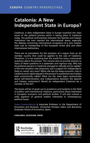 1. Foreword 2. Introduction Xavier Cuadras-Morató 3. Catalonia at a crossroad: Political analysis of the increasing support for secession Marc Guinjoan, Toni Rodon and Marc Sanjaume 4. The Secession of Catalonia: Legal Strategies and Barriers Hèctor López Bofill and Pau Bossacoma 5. The independence of Catalonia: Opportunities and threats for the Catalan economy Xavier Cuadras-Morató 6. Political Economy of the Secession: A Game-theoretic Approach Enriqueta Aragonès and Clara Ponsatí 7. An Independent Catalonia as Member of the European Union? Fernando Guirao 8. Conclusions Xavier Cuadras-Morató