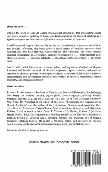 This book provides a complete updating of important developments in the study of catalysis as it applies to organic synthesis — with applications in major industrial processes. It covers a broad variety of catalytic processes — both homogeneous and heterogeneous.