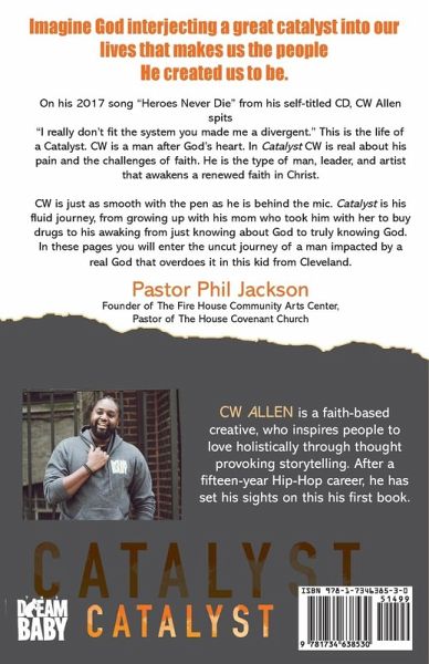 "What CW Allen has done in this book is open himself up in a way that reminds us all of our need. . . .recognize the myriad of relational experiences that have been a catalyst in our lives, yet, with equal measure to hold ourselves accountable for how we can be a catalyst for change for our children, communities, cities, countries, and entire culture." -from the foreword Imagine God interjecting a great catalyst into our lives that makes us the people He created us to be. God doesn't allow us to be acquainted with true purpose apart from uncomfortable seasoning. And this is exactly what has happened in CW's life. "CW is a man after God's heart. In Catalyst CW is real about his pain and the challenges of faith. He is the type of man, leader, and artist that awakens a renewed faith in Christ. CW is just as smooth with the pen as he is behind the mic. Catalyst is his fluid journey, from growing up with his mom who took him with her to buy drugs to his awaking from just knowing about God to truly knowing God. In these pages you will enter the uncut journey of a man impacted by a real God that overdoes it in this kid from Cleveland." (Pastor Phil Jackson Founder of The Fire House Community Arts Center, Pastor of The House Covenant Church.)
