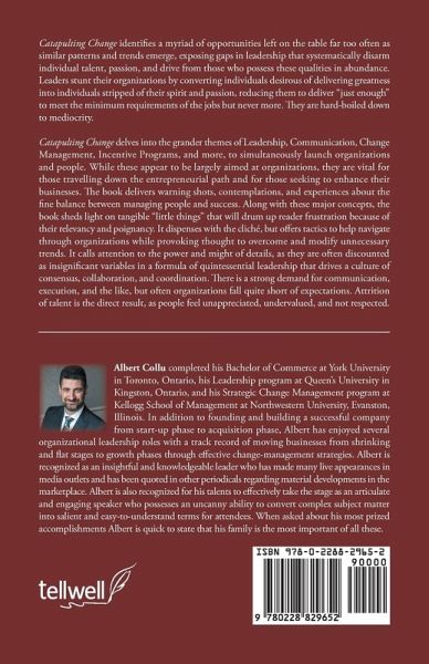 Catapulting Change identifies a myriad of opportunities left on the table far too often as similar patterns and trends emerge exposing gaps in leadership that systematically disarm individual talent, passion, and drive from those who possess these qualities in abundance. Leaders stunt their organizations by converting individuals desirous of delivering greatness into individuals stripped of their spirit and passion, reducing them to deliver "just enough" to meet the minimum requirements of the jobs but never more. They are hard-boiled down to mediocrity. Catapulting Change delves into the grander themes of Leadership, Communication, Change Management, Incentive Programs, and more, to simultaneously launch organizations and people. While these appear to be largely aimed at organizations, they are vital for those travelling down the entrepreneurial path and for those seeking to enhance their businesses. The book delivers warning shots, contemplations, and experiences about the fine balance between managing people and success. Along with these major concepts, the book sheds light on tangible "little things" that will drum up reader frustration because of their relevancy and poignancy. It dispenses with the cliché, but offers tactics to help navigate through organizations while provoking thought to overcome and modify unnecessary trends. It calls attention to the power and might of details as they are often discounted as insignificant variables in a formula of quintessential leadership that drives a culture of consensus, collaboration, and coordination. There is a strong demand for communication, execution, and the like, but often organizations fall quite short of expectations. Attrition of talent is the direct result as people feel unappreciated, undervalued, and not respected.