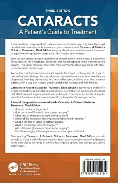 If you have been diagnosed with cataracts or are concerned you may have them, get detailed and understandable answers to your questions with Cataracts: A Patientâ s Guide to Treatment, Third Edition, newly updated to include the latest information on rapidly-evolving cataract surgical and lens implant technologies.