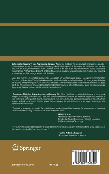 Catastrophe Modeling: A New Approach to Managing Risk is the first book that systematically analyzes how catastrophe models can be used for assessing and managing risks of extreme events. It focuses on natural disaster risk, but also discusses the management of terrorism risk. A unique feature of this book is the involvement of three leading catastrophe modeling firms, AIR Worldwide, EQECAT, and Risk Management Solutions, who examine the role of catastrophe modeling in rate setting, portfolio management and risk financing.