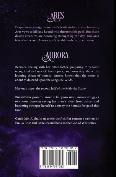ARES Desperate to avenge his mother's death and to protect his mate, Ares vows to kill any hound who threatens his pack. But those deadly creatures are becoming stronger by the day, and Ares fears that he and Aurora won't be able to defeat them alone. AURORA Between dealing with her bitter father, preparing to become recognized as Luna of Ares's pack, and worrying about the looming threat of hounds, Aurora knows that the worst is about to descend upon the Sanguine Wilds. Her only hope: the second half of the Malavite Stone. But with the powerful stone in her possession, Aurora struggles to choose between saving her mate's sister from cancer and becoming stronger herself to destroy the hounds for good this time. What will Aurora choose? Find out when you download Catch Me, Alpha, a steamy paranormal romance that fans of Suzanne Wright and K.F. Breene will devour!