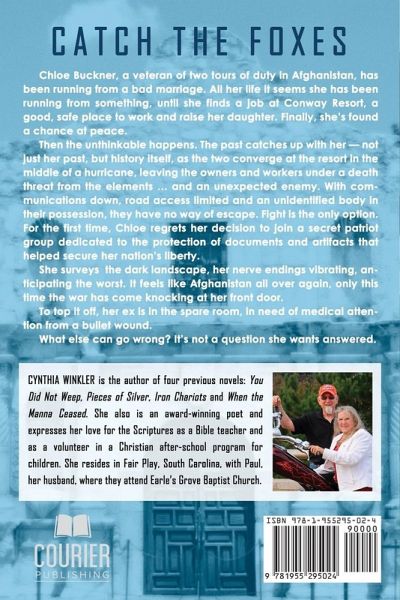 Chloe Buckner, a veteran of two tours of duty in Afghanistan, has been running from a bad marriage. All her life it seems she has been running from something, until she finds a job at Conway Resort, a good, safe place to work and raise her daughter. Finally, she's found a chance at peace. Then the unthinkable happens. The past catches up with her - not just her past, but history itself, as the two converge at the resort in the middle of a hurricane, leaving the owners and workers under a death threat from the elements ... and an unexpected enemy. With communications down, road access limited and an unidentified body in their possession, they have no way of escape. Fight is the only option. For the first time, Chloe regrets her decision to join a secret patriot group dedicated to the protection of documents and artifacts that helped secure her nation's liberty. She surveys the dark landscape, her nerve endings vibrating, anticipating the worst. It feels like Afghanistan all over again, only this time the war has come knocking at her front door. To top it off, her ex is in the spare room, in need of medical attention from a bullet wound. What else can go wrong? It's not a question she wants answered.