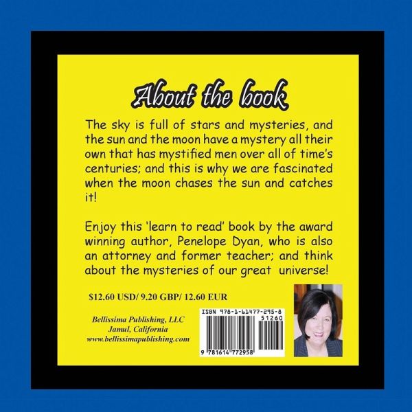 Once upon a time, the moon had a dream that it could catch the sun. And finally, the moon's dream came true! However, it appeared this wasn't the first time, or even the only time, this had happened; and it appeared that the moon had been playing this game with the sun since the beginning of time! And with any luck, it would keep playing this game until time's end. Use this book to discuss the solar eclipse and what it means. And while you are at it, you can practice your reading skills with this 'learn to read' book filled with word repetition, word recognition and rhyme. Written by award winning author, attorney, and former teacher, Penelope Dyan, this book with its extra-large print is perfect for young eyes. And its size is perfect for carrying in a kid's backpack! So enjoy this book as you think about the miracle of our sun, earth and sky; and then think about the wonder of people long ago who experienced the same miracle dancing before their eyes. Then when you are all through having fun reading this book, watch the free music video that goes along with this book on Bellissiavideo's YouTube channel.
