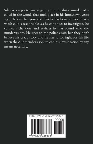 Silas is a reporter investigating the ritualistic murder of a co-ed in the woods that took place in his hometown years ago. The case has gone cold but he has heard rumors that a witch cult is responsible...as he continues to investigate...he connects the dots and realizes he has found who the murderers are. He goes to the police again but they don't believe his crazy story and he has to for fight for his life when the cult members seek to end his investigation by any means necessary.