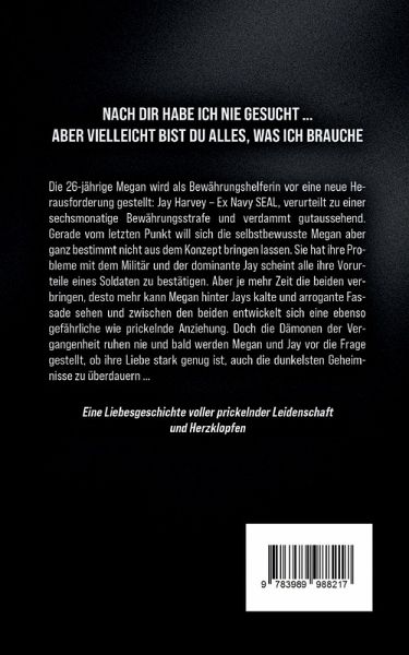 Proband ist ausgerechnet Jay, ein Ex-Navy Seal, der aufgrund von Drogenbesitz zu einer…mehrMegan ist Bewährungshelferin und macht gerade eine schwierige Phase in ihrem Job durch. Nach einem Vorfall mit einem ihrer Probanden, ist ihr Chef sehr unzufrieden mit ihr und stellt ihr ein Ultimatum: sie muss sich bei ihrem nächsten Probanden bewähren, sonst ist sie ihren Job los.