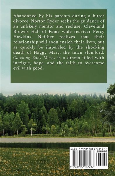 When a thirteen-year-old middle-class white boy is abandoned by his divorcing parents, it takes a retired black NFL football player to redeem him from self-destruction. Neither realizes that their lives will be enriched by their relationship, then quickly imperiled by the shocking death of the town slumlord. "Catching Baby Moses", tells an interracial story of friendship, honor, and forgiveness.