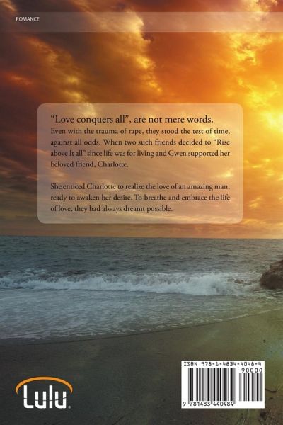 "Love conquers all", are not mere words. Even with the trauma of rape, they stood the test of time, against all odds. When two such friends decided to "Rise above It all" since life was for living and Gwen supported her beloved friend, Charlotte. She enticed Charlotte to realize the love of an amazing man, ready to awaken her desire. To breathe and embrace the life of love, they had always dreamt possible.