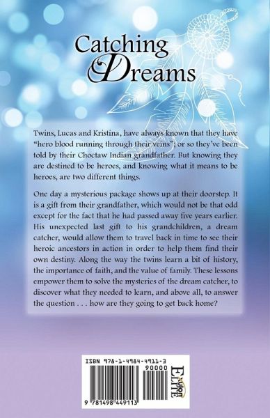 Twins, Lucas and Kristina, have always known that they have "hero blood running through their veins"; or so they've been told by their Choctaw Indian grandfather. But knowing they are destined to be heroes, and knowing what it means to be heroes, are two different things. One day a mysterious package shows up at their doorstep. It is a gift from their grandfather, which would not be that odd except for the fact that he had passed away five years earlier. His unexpected last gift to his grandchildren, a dream catcher, would allow them to travel back in time to see their heroic ancestors in action in order to help them find their own destiny. Along the way the twins learn a bit of history, the importance of faith, and the value of family. These lessons empower them to solve the mysteries of the dream catcher, to discover what they needed to learn, and above all, to answer the question . . . how are they going to get back home?
