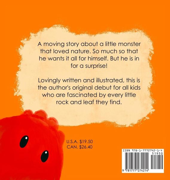 A moving story about a little monster that loved nature. So much so that he wants it all for himself. But he is in for a surprise! Lovingly written and illustrated, this is the author's original debut for all kids who are fascinated by every little rock and leaf they find. This is a short story for toddlers and small kids about a cute monster who likes to venture out into nature and collect items in jars. Eventually he has a change of heart and discovers the importance of appreciating and respecting nature from afar. The book is great for teaching themes like conservation, greed and materialism, yet in a lighthearted way that resonates with small kids. It is a straightforward story with a deeper message and colourful illustrations.