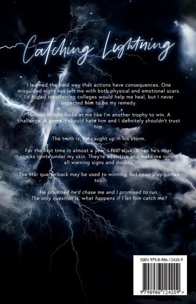 I learned the hard way that actions have consequences. One misguided night has left me with both physical and emotional scars. I'd hoped transferring colleges would help me heal, but I never expected him to be my remedy. Hudson Wright looks at me like I'm another trophy to win. A challenge. A game. I should hate him and I definitely shouldn't trust him. The truth is, I'm caught up in his storm. For the first time in almost a year, I feel alive. When he's near, sparks ignite under my skin. They're addictive and make me ignore all warning signs and doubts. The star quarterback may be used to winning, but I can play games too. He promised he'd chase me and I promised to run. The only question is, what happens if I let him catch me? CATCHING LIGHTNING is a spicy enemies-to-lovers college football romance and a complete standalone with a guaranteed HEA. Author's Note: All CWs/TWs can be found in the front of the book, the author's website, or on Goodreads. Mature readers only.