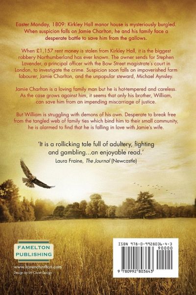 Easter Monday, 1809: Kirkley Hall manor house is mysteriously burgled. When suspicion falls on Jamie Charlton, he and his family face a desperate battle to save him from the gallows. When £1,157 rent money is stolen from Kirkley Hall, it is the biggest robbery Northumberland has ever known. Suspicion soon falls on impoverished farm labourer, Jamie Charlton, and the unpopular steward, Michael Aynsley. Jamie Charlton is a loving family man but he is hot-tempered and careless. As the case grows against him, it seems that only his brother, William, can save him from an impending miscarriage of justice. But William is struggling with demons of his own. Desperate to break free from the tangled web of family ties which bind him to their small community, he is alarmed to find that he is falling in love with Jamie's wife. Set beneath the impenetrable gaze of a stray golden eagle whose fate seems to mirror that of Jamie's, 'Catching the Eagle' is a fictionalised account of a real trial that devastated a family and divided a community.
