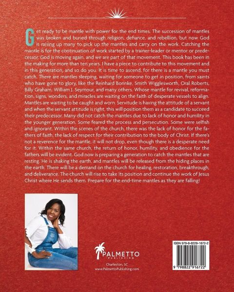Get ready to be mantle with power for the end times. The succession of mantles was broken and buried through religion, defiance, and rebellion, but now God is raising up many to pick up the mantles and carry on the work. Catching the mantle is for the continuation of work started by a trainer-leader or mentor or predecessor. God is moving again, and we are part of that movement. This book has been in the making for more than ten years. I have a piece to contribute to this movement and in this generation, and so do you. It is time to ascend, for there is a mantle you must catch. There are mantles sleeping, waiting for someone to get in position, from saints who have gone to glory, like the Reinhard Bonnke, Smith Wigglesworth, Oral Roberts, Billy Graham, William J. Seymour, and many others. Whose mantle for revival, reformation, signs, wonders, and miracles are waiting on the faith of desperate vessels to align. Mantles are waiting to be caught and worn. Servitude is having the attitude of a servant and when the servant attitude is right, this will position them as a candidate to succeed their predecessor. Many did not catch the mantles due to lack of honor and humility in the younger generation. Some feared the process and persecution. Some were selfish and ignorant. Within the scenes of the church, there was the lack of honor for the fathers of faith, the lack of respect for their contribution to the body of Christ. If there's not a reverence for the mantle, it will not drop, even though there is a desperate need for it. Within the same church, the return of honor, humility, and obedience for the fathers will be evident. God now is preparing a generation to catch the mantles that are resting. He is shaking the earth, and mantles will be released from the hiding places in the earth. There will be a demand on the church for healing, restoration, breakthrough, and deliverance. The church will rise to take its position and continue the work of Jesus Christ where He sends them. Prepare for the end-time mantles as they are falling!